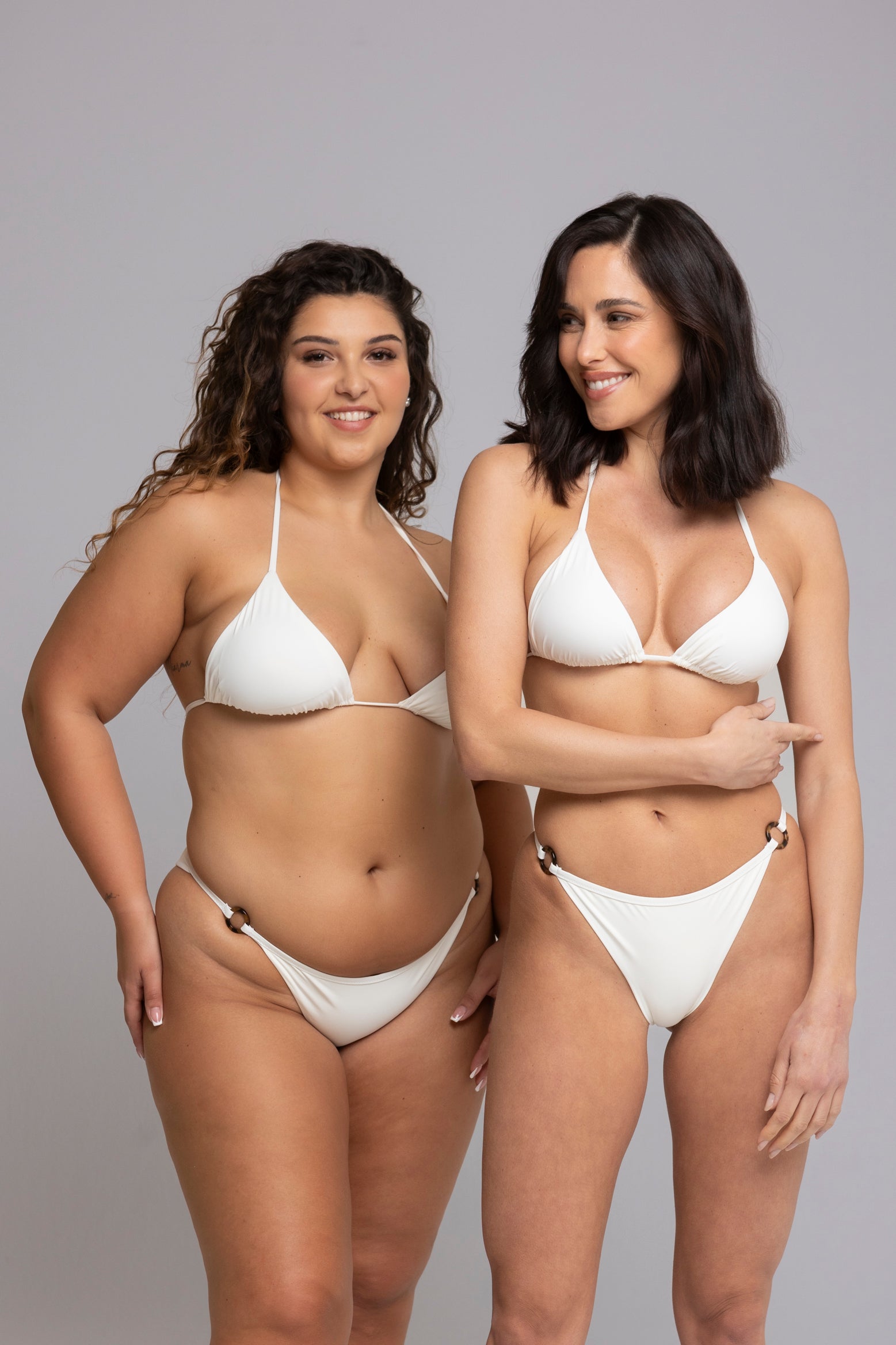 Le modelle indossano rispettivamente una taglia S e una taglia L.