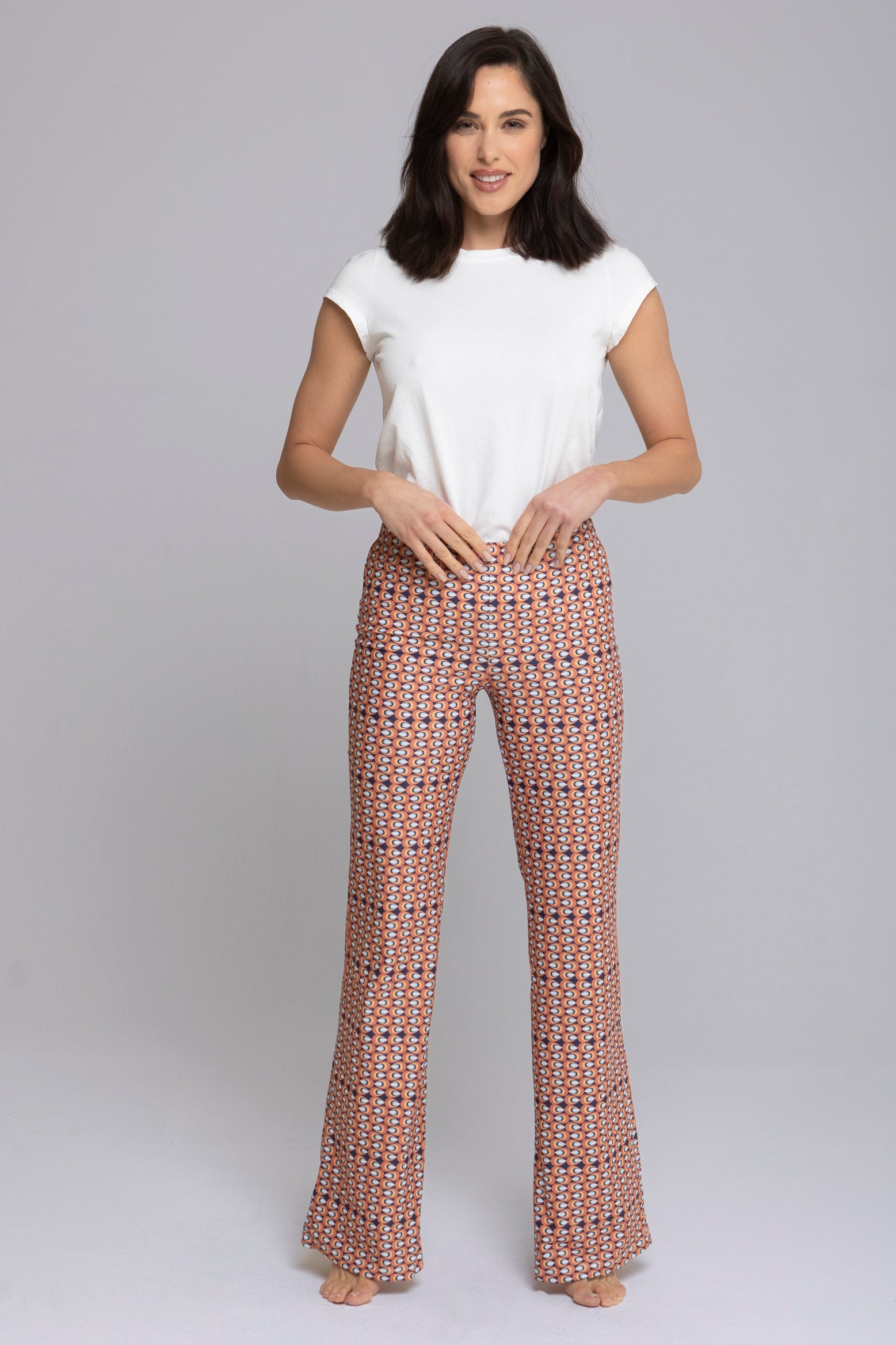 Pantaloni lunghi in lycra, modello flare, con elastico in vita per una vestibilità comoda. Il tessuto lycra, a rapido asciugamento, li rende ideali per le giornate estive. Perfetti da abbinare ai costumi della stessa fantasia, per un look coordinato e stiloso.