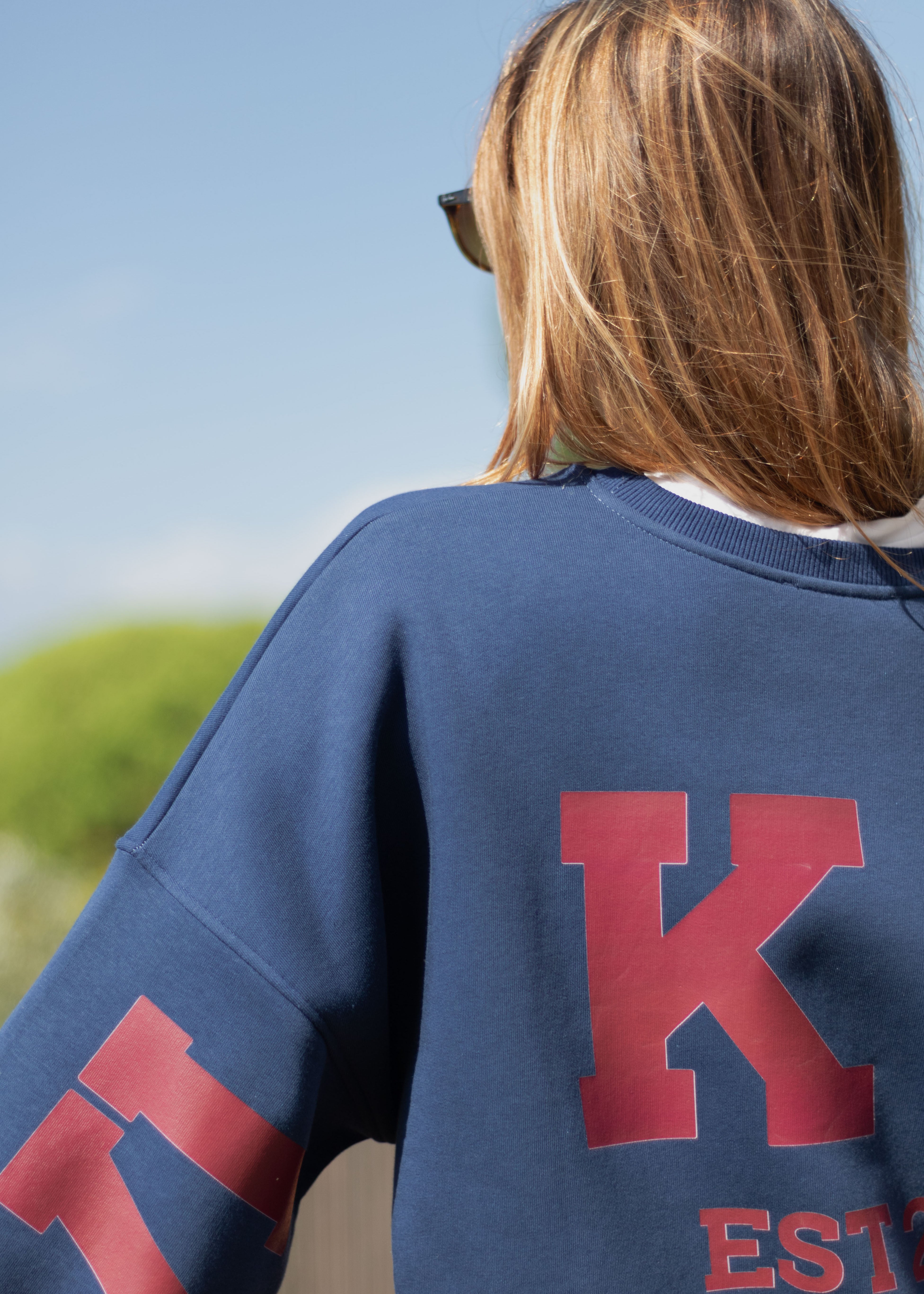 Felpa 26190 Beige con stampa blu navy