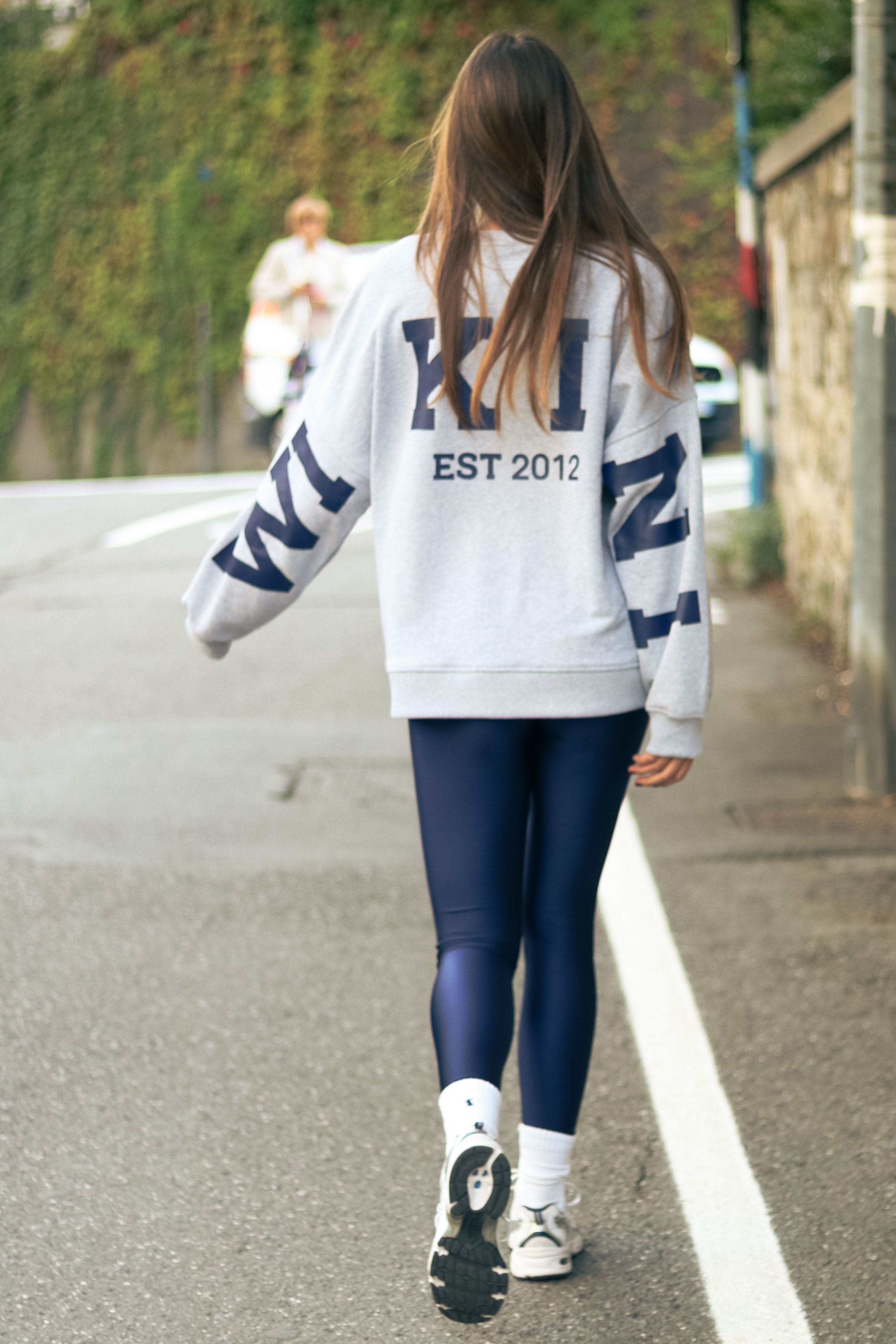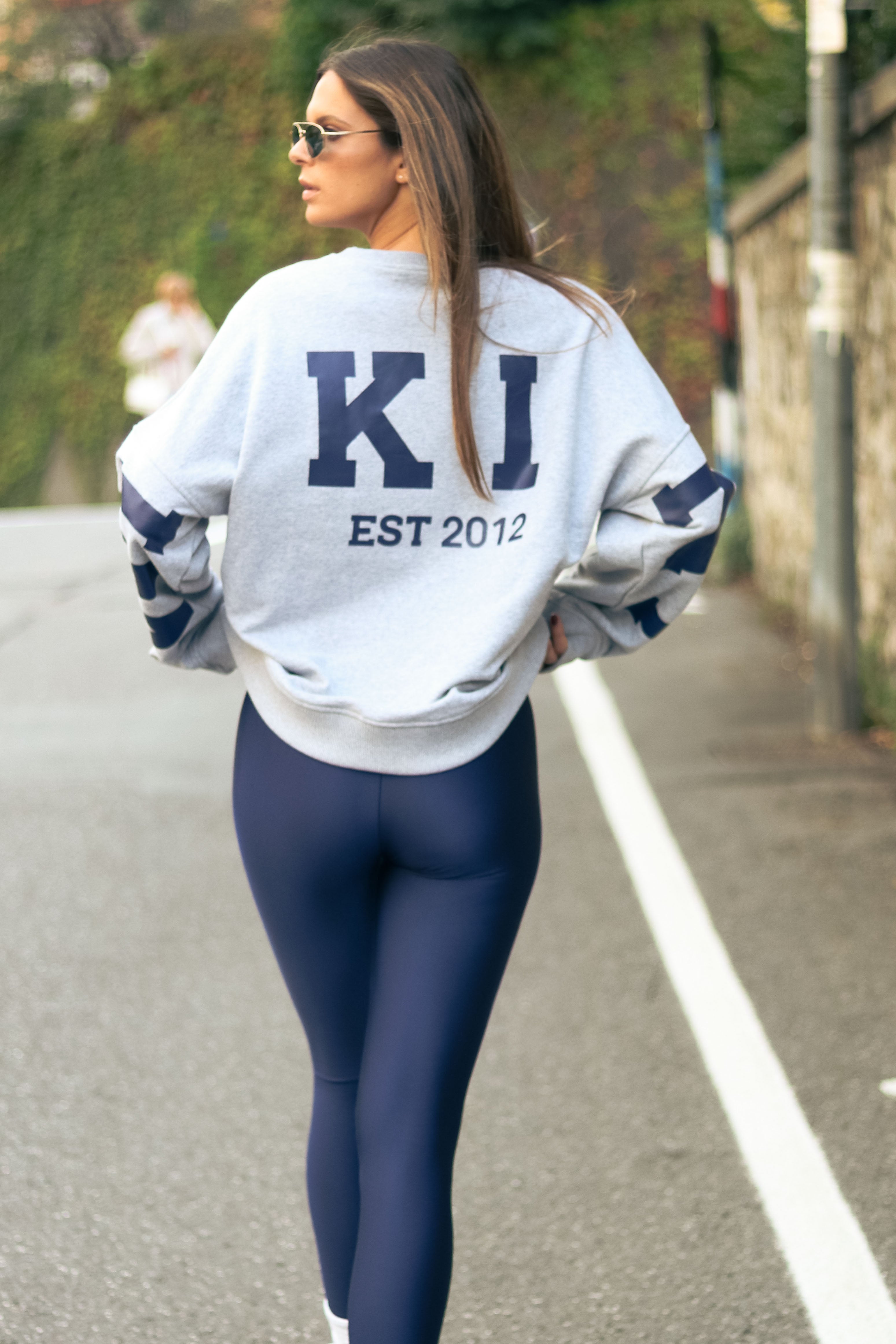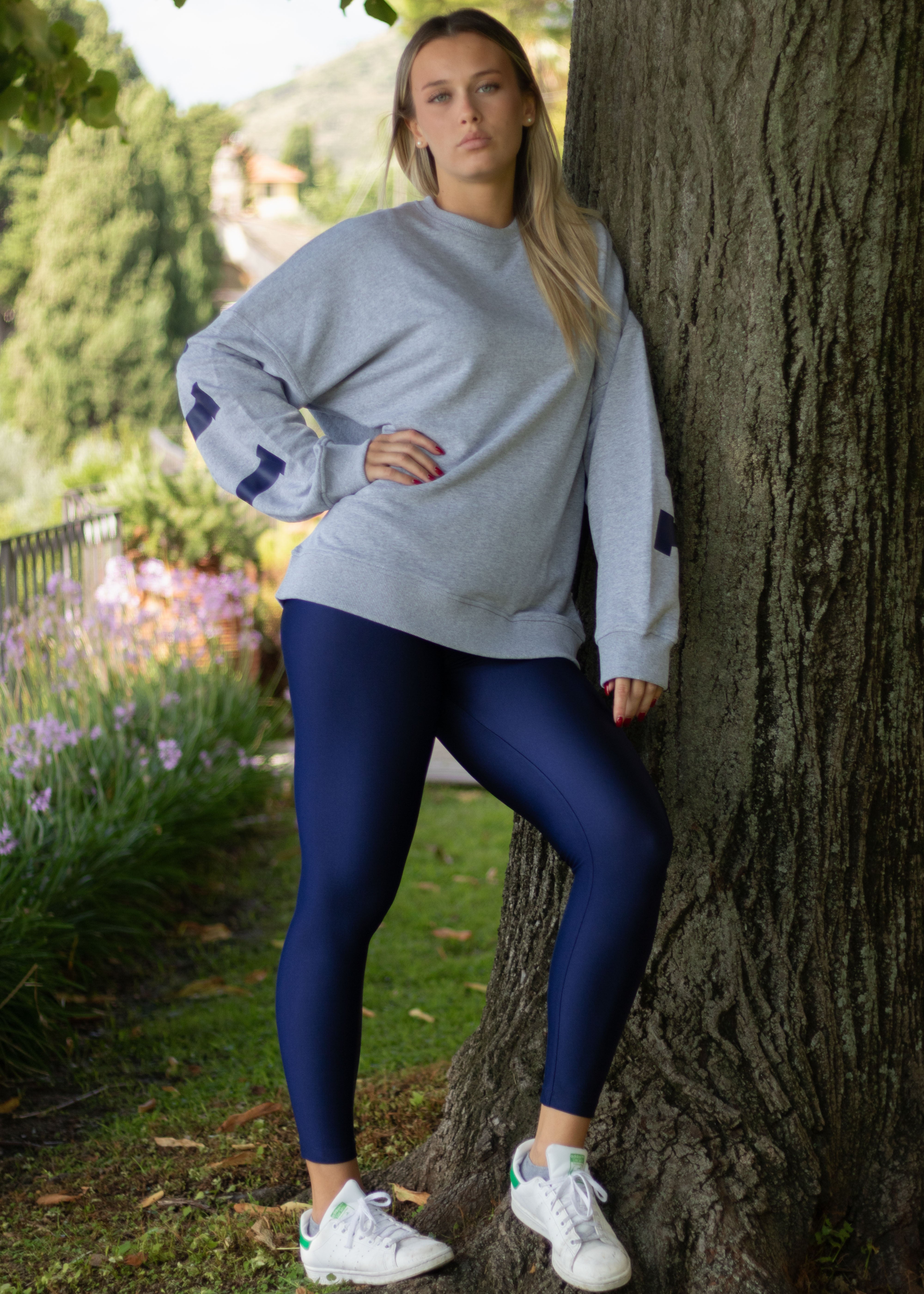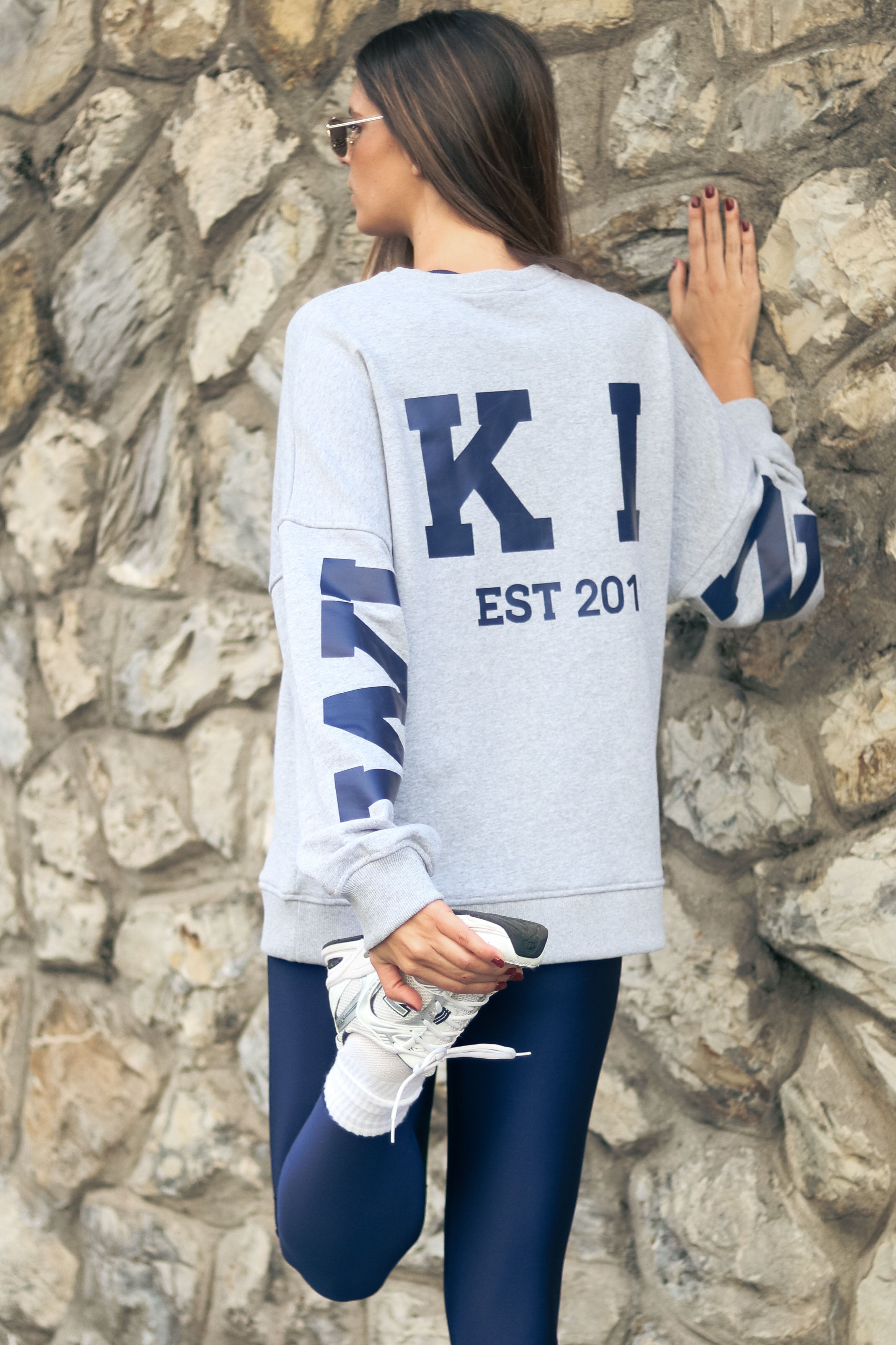 Felpa garzata 26190 grigio melange con stampa blu scuro
