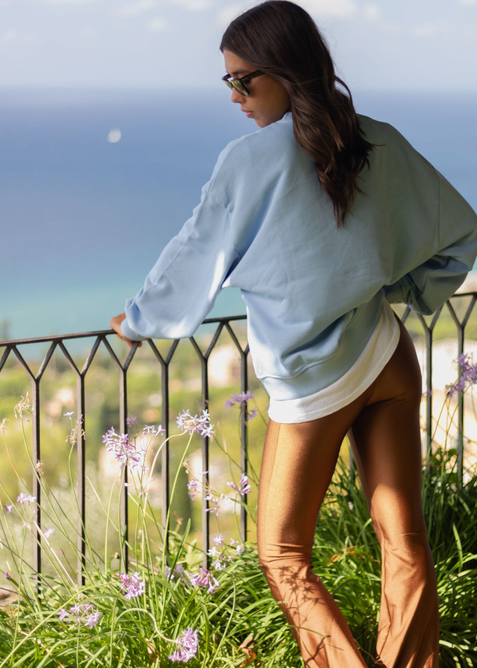Felpa garzata 26197G Azzurro cielo con stampa marrone