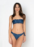 Slip brasiliano con fiocchi in vita veste da una 38 ad una 42 circa, completamente regolabile grazie ai laccetti.