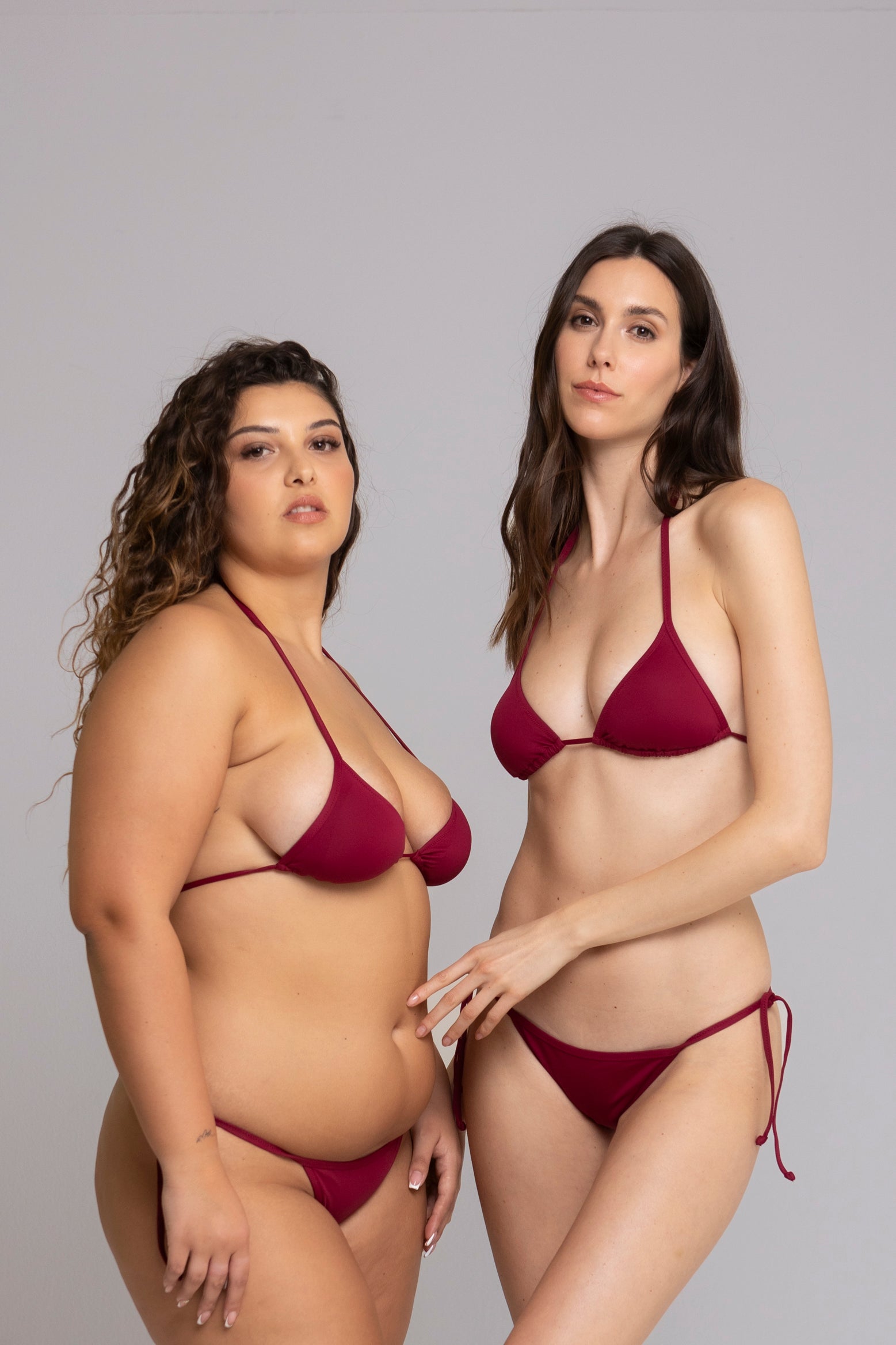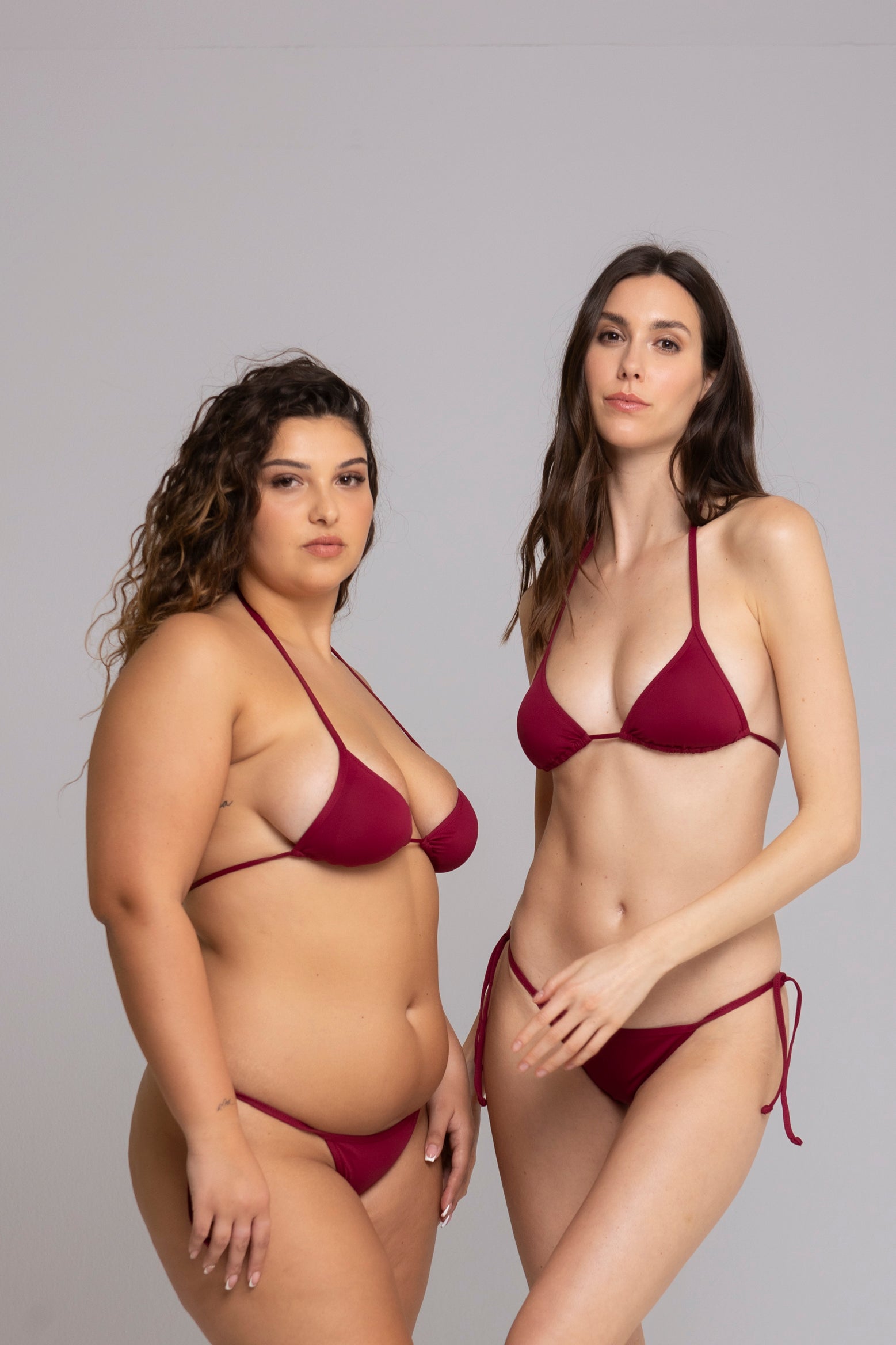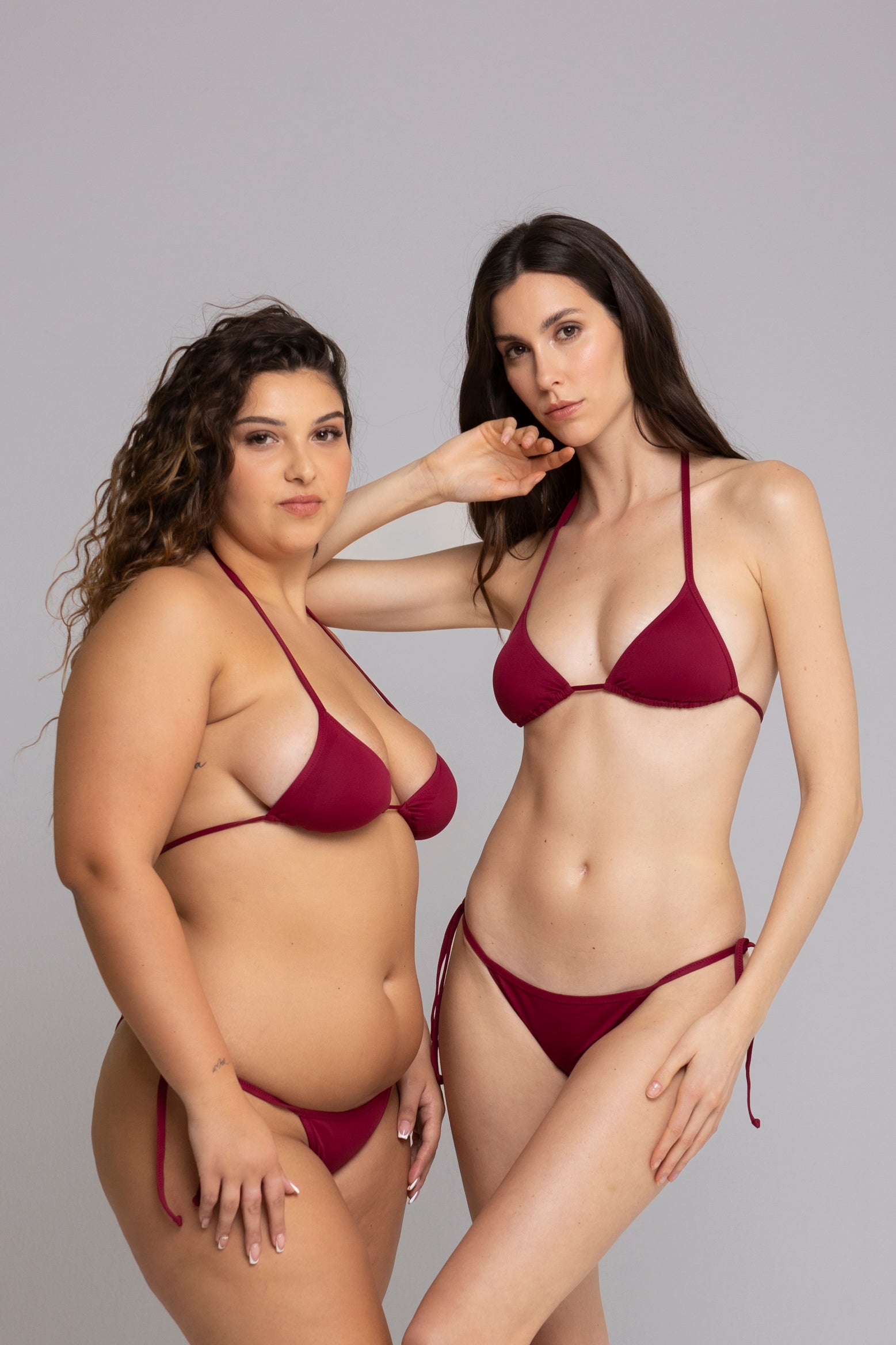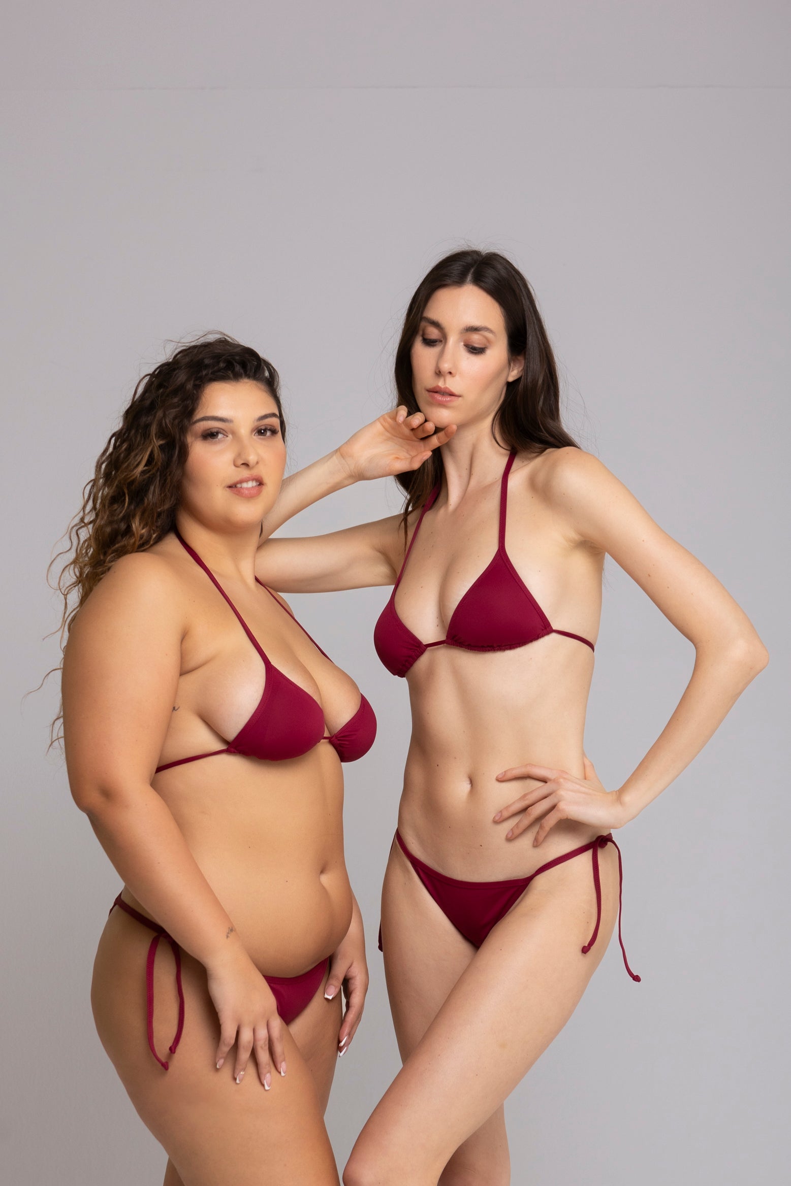 Top a triangolo con imbottitura rimovibile. Slip con lacci sottili sui lati.