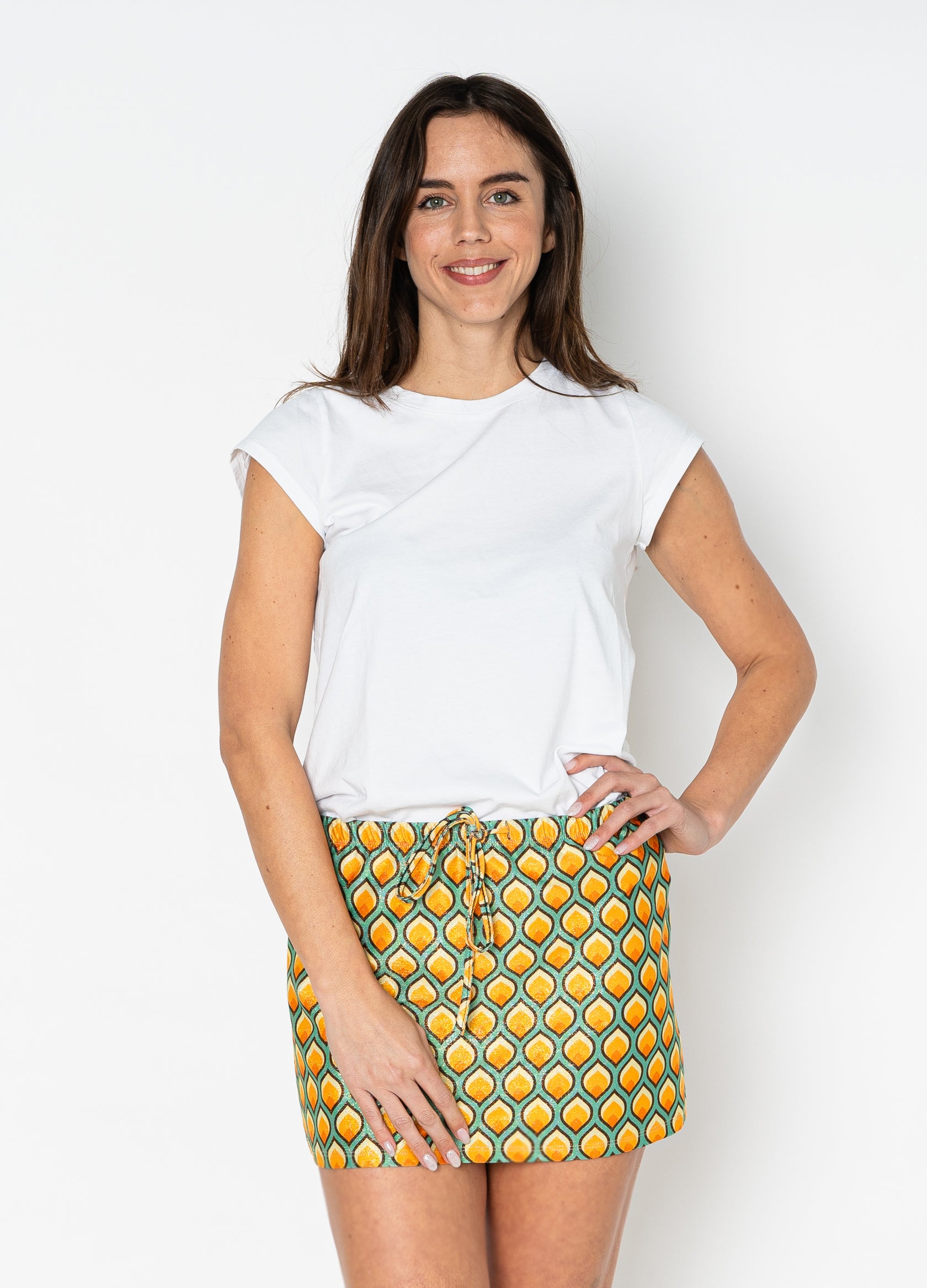 Il tessuto dall’asciugatura rapida rende la gonna perfetta per le giornate in riva al mare o in barca. Abbina la tua gonna al corrispondente costume nella stessa fantasia!