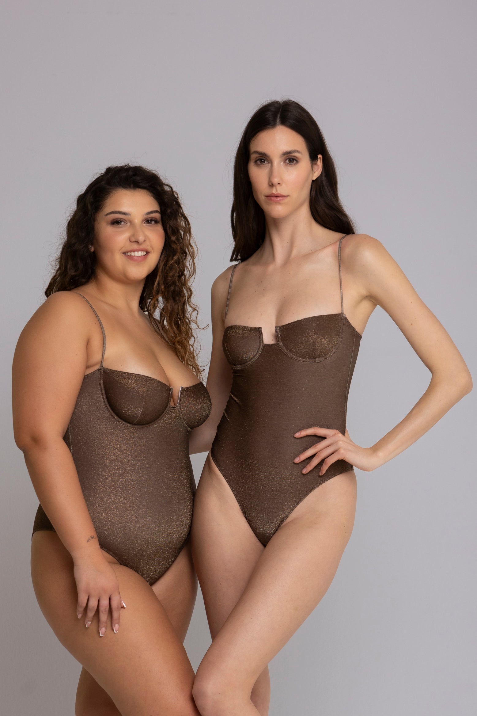 Il costume intero Penelope combina eleganza e comfort, con scollo a balconcino e ferretto per un sostegno impeccabile. Le spalline regolabili garantiscono una vestibilità personalizzata, mentre lo slip leggermente sgambato esalta la silhouette con un tocco di femminilità.