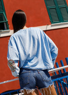 Felpa in ciniglia comoda e dallo stile casual, con toppe a contrasto in Liberty sui gomiti che aggiungono un tocco vivace. Dal taglio oversize e piuttosto corto, garantisce una vestibilità larga e comoda, perfetta per un look rilassato e informale. Ideale per essere abbinata a jeans per un outfit semplice, ma di tendenza