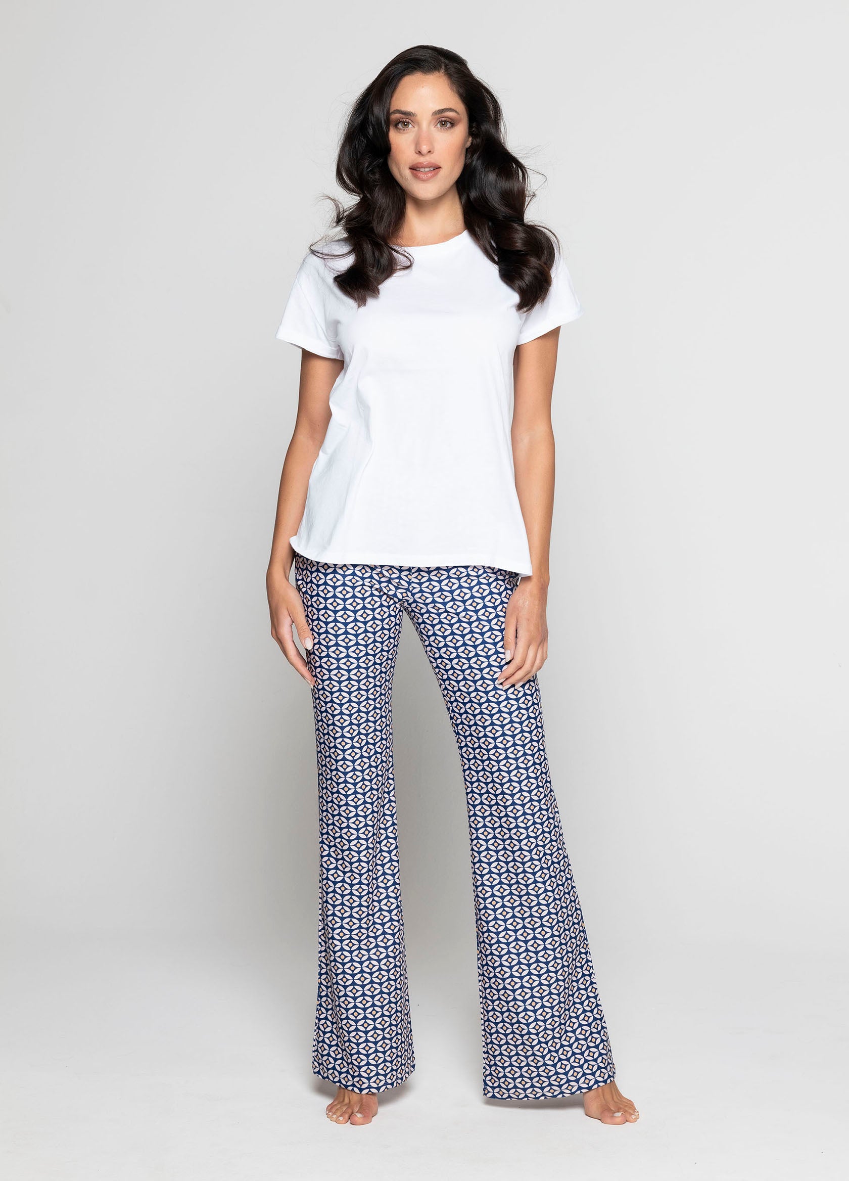Pantaloni in lycra lunghi, modello flare, con elastico in vita. Il tessuto lycra dall’asciugatura rapida, li rende perfetti per le giornate estive. Fantasie abbinabili ai frufu interi o bikini.