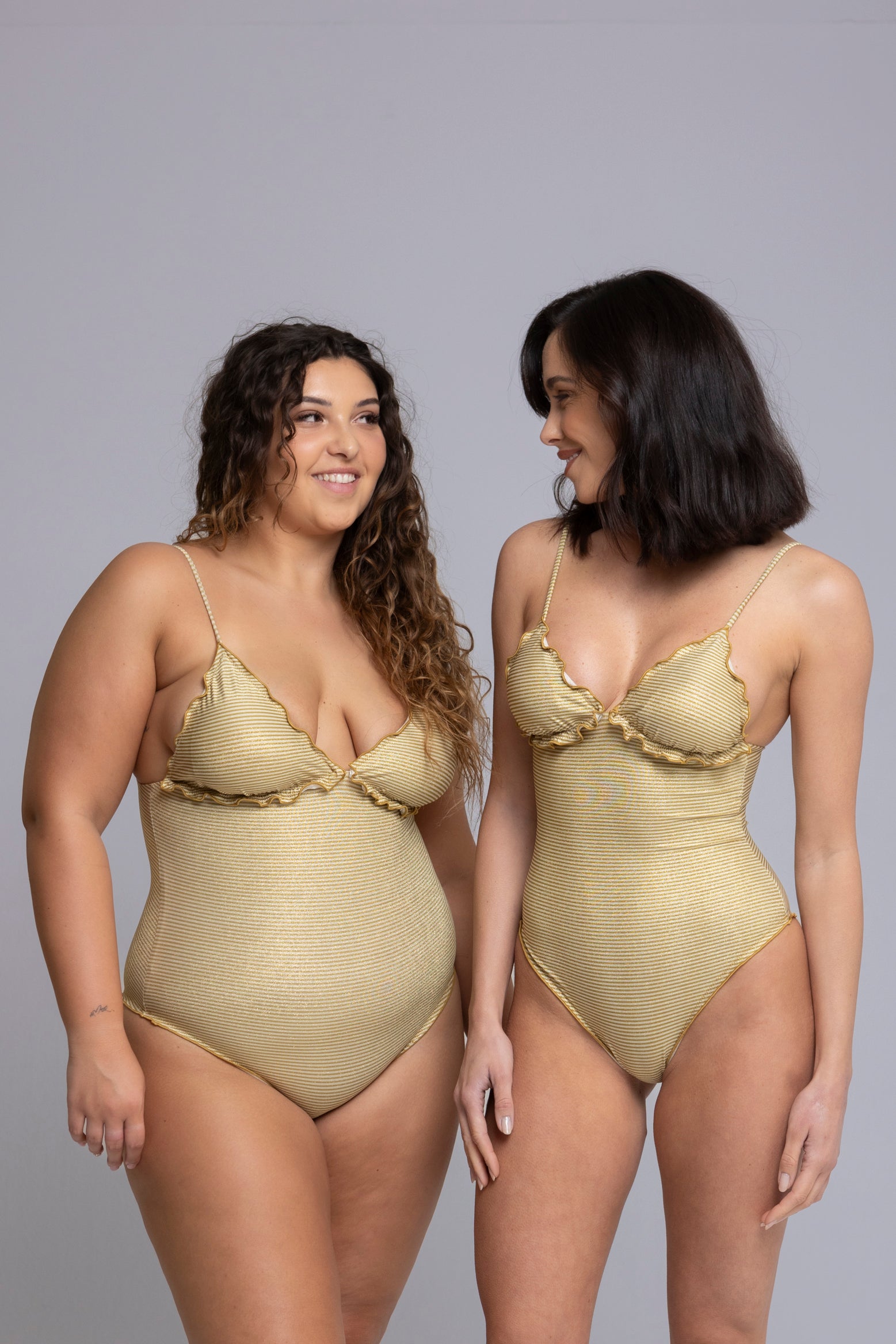 Tutto il fascino del bikini Frufru, racchiuso in un costume intero femminile e confortevole. Realizzato in morbido tessuto arricciato lungo i bordi, accarezza il corpo senza segnare. Le coppe a triangolo con imbottitura removibile valorizzano il décolleté con uno scollo a V elegante. Le spalline sottili sono regolabili grazie al cursore per garantire una vestibilità perfetta. Il retro presenta una sgambatura morbida e una vestibilità regular, pensata per adattarsi naturalmente alle forme.