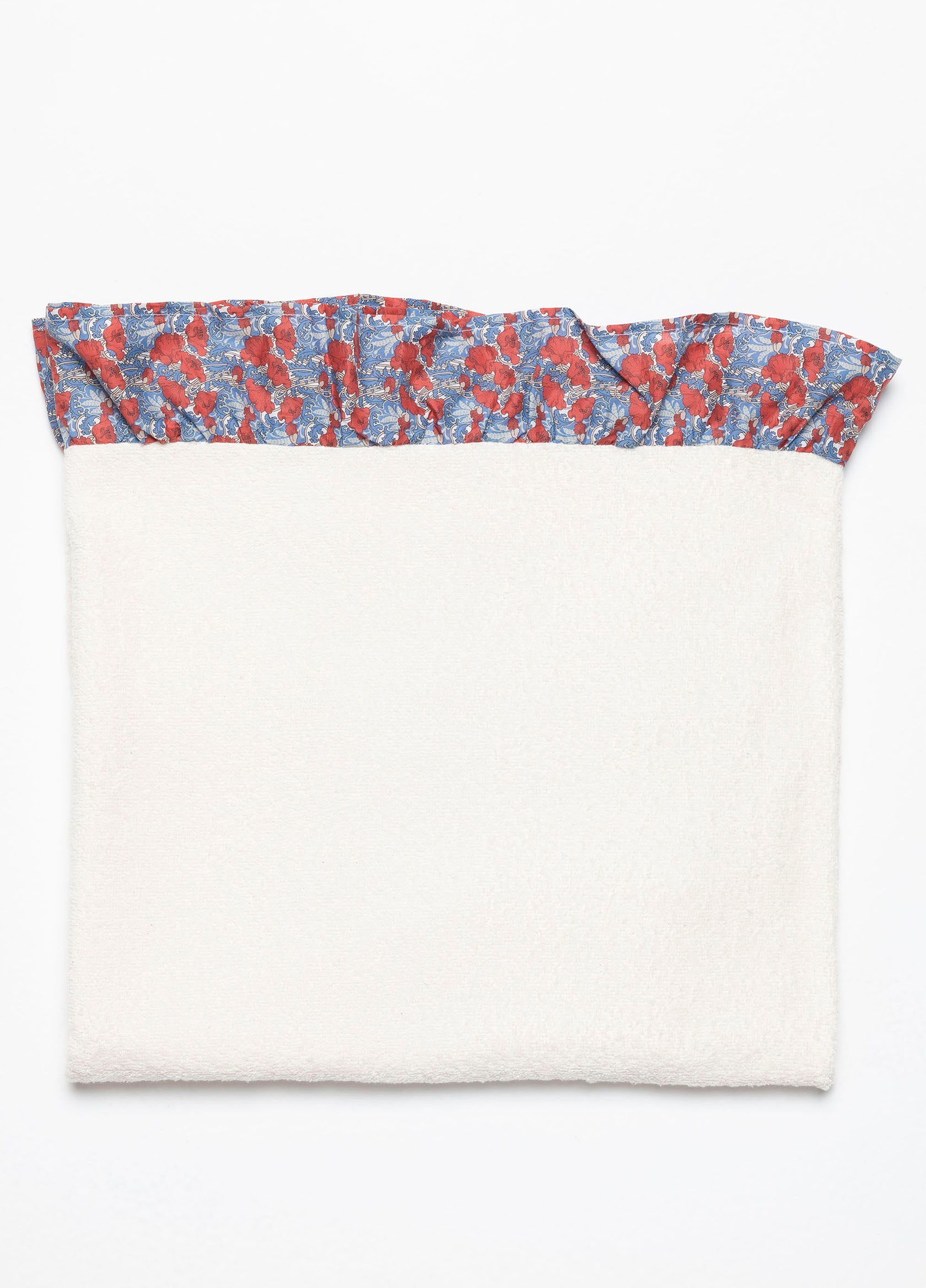 Telo mare in morbida spugna bianca 100% cotone, con bordo arricciato in stampa Liberty London
