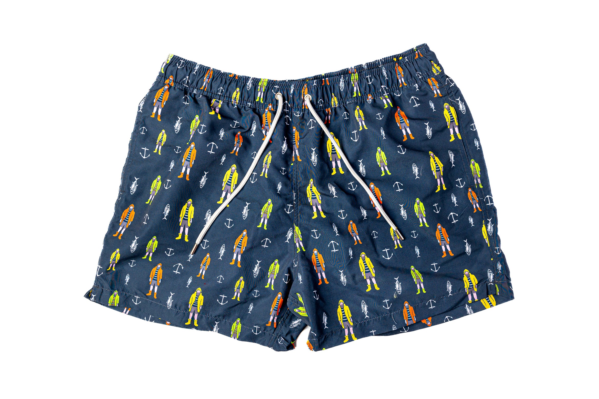 Costume da uomo a pantaloncino con elastico in vita e laccetto per regolare la vestibilità. Tasche laterali aperte ed una tasca posteriore con chiusura a bottone