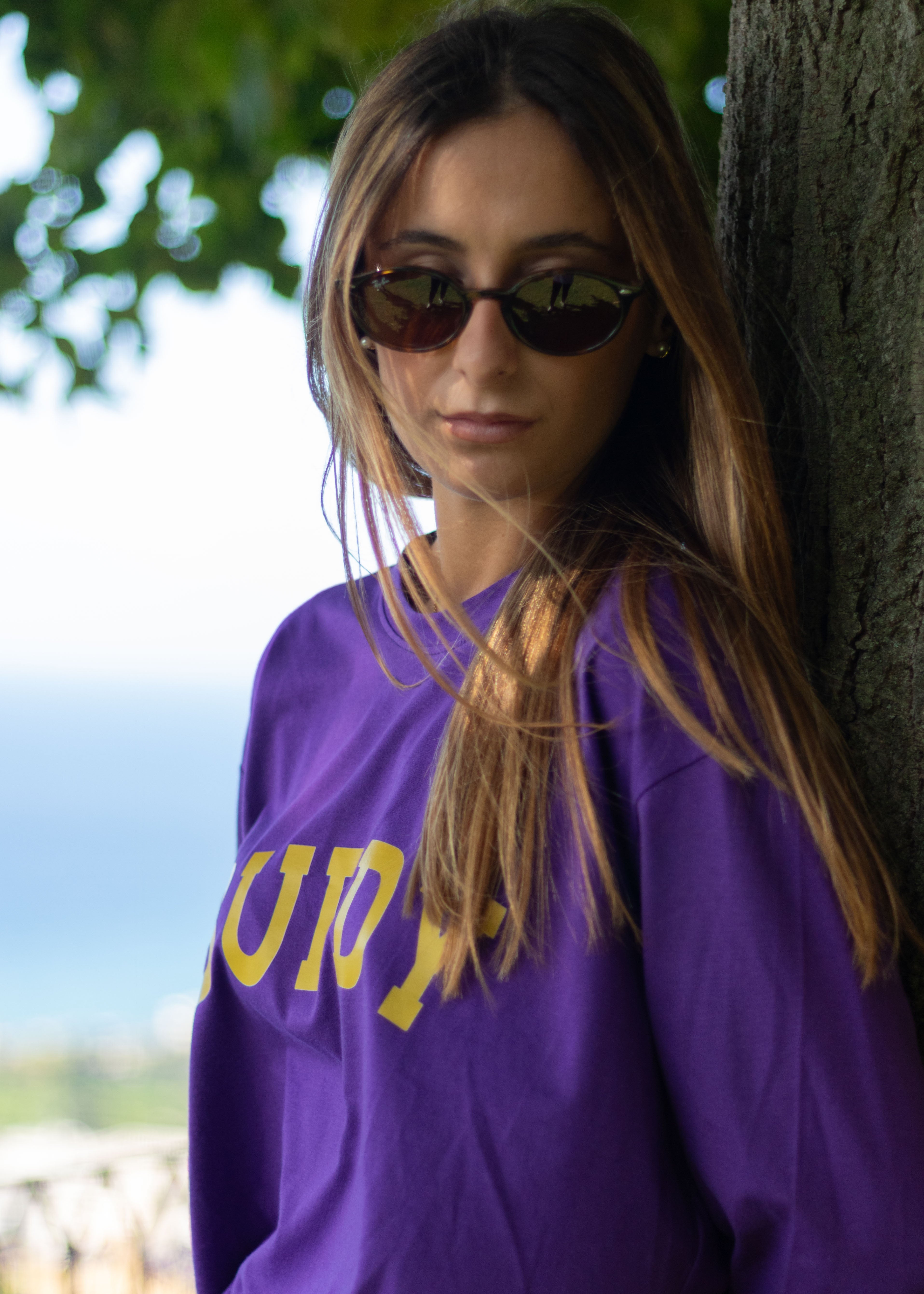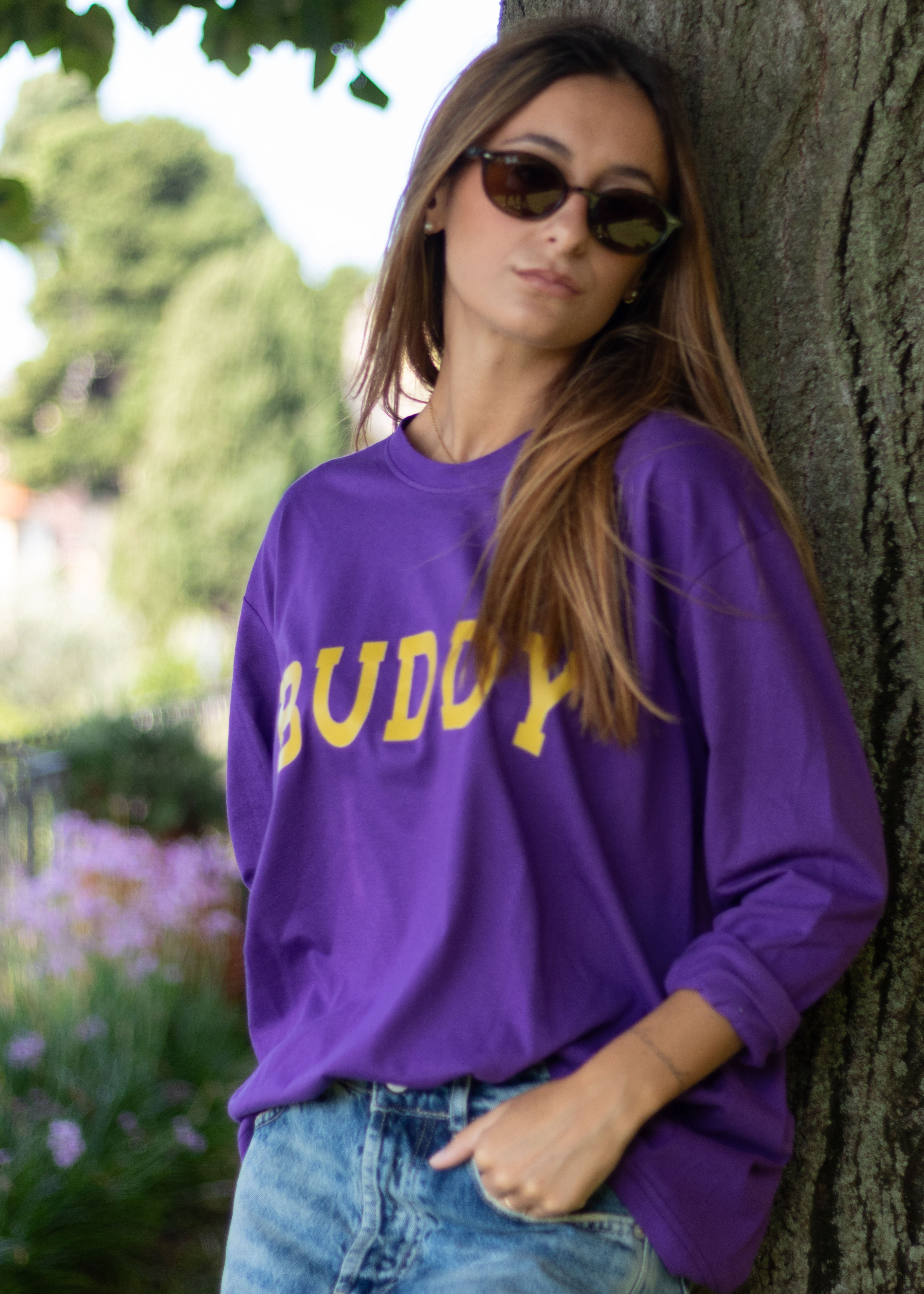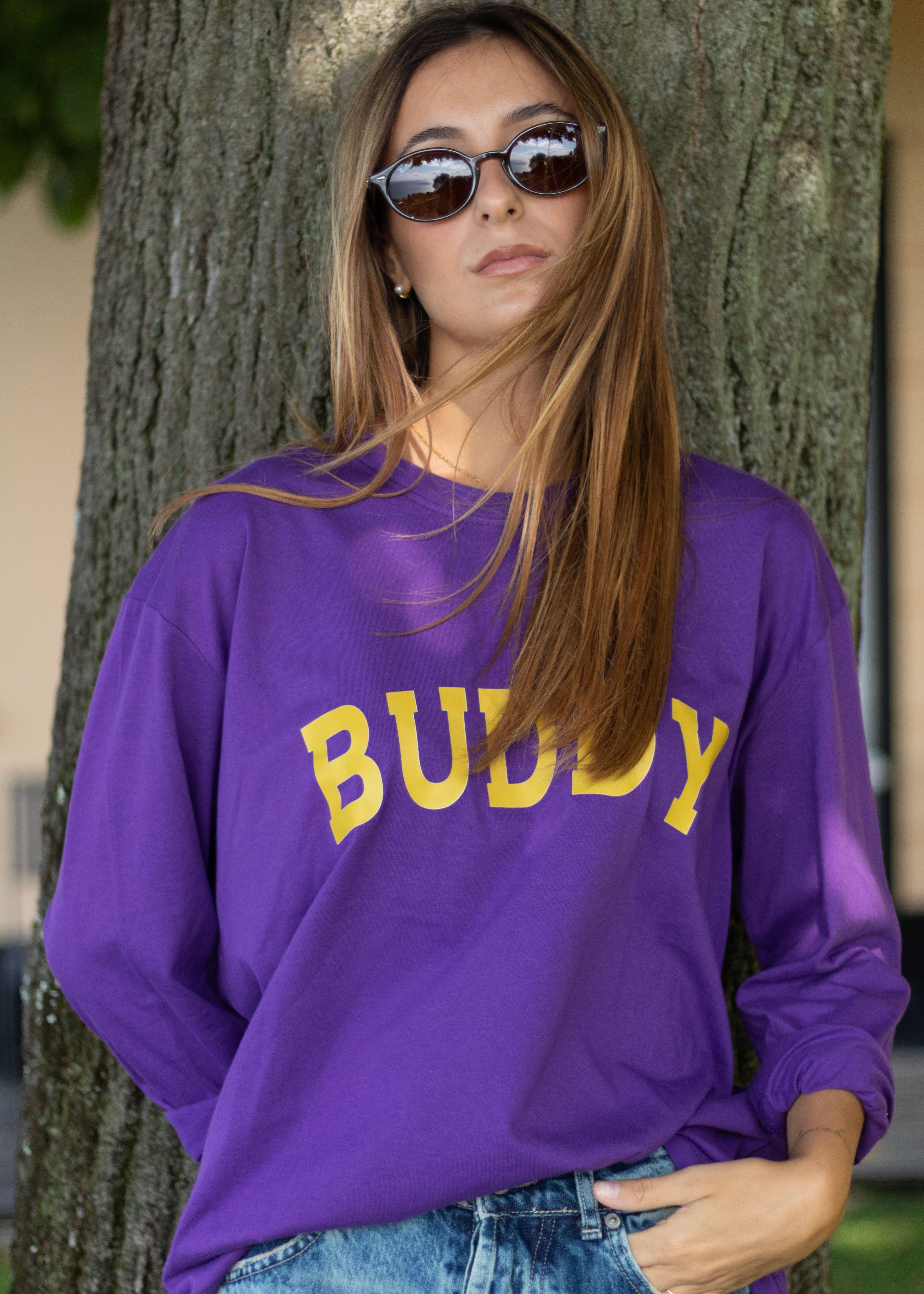 T-shirt manica lunga viola con stampa gialla BUDDY