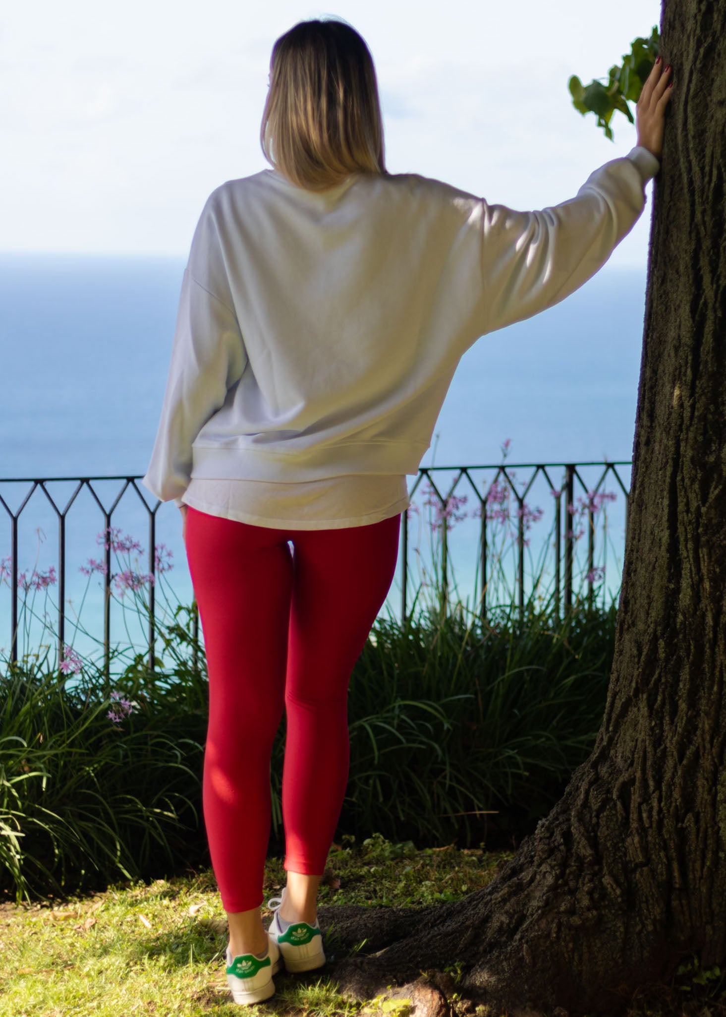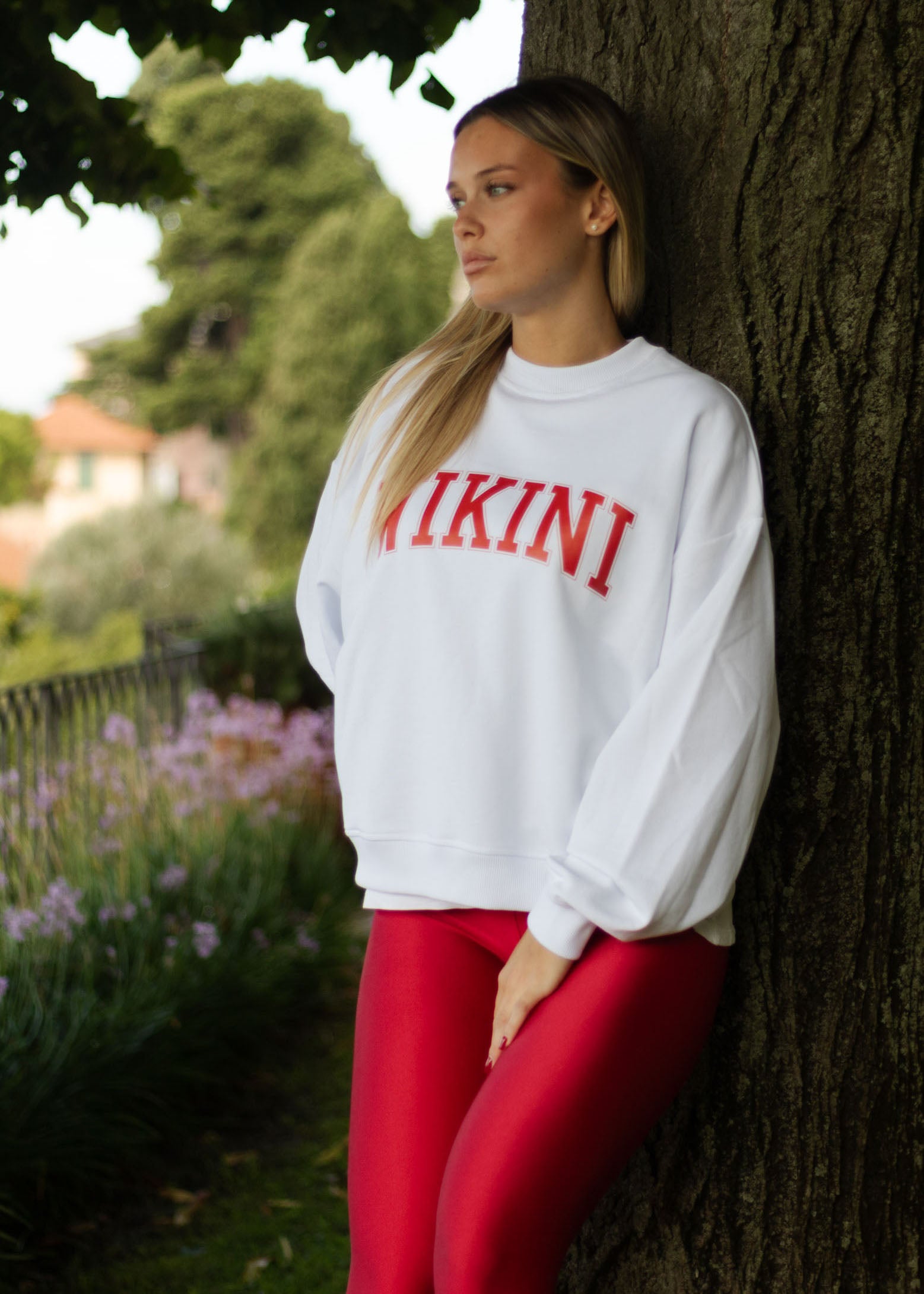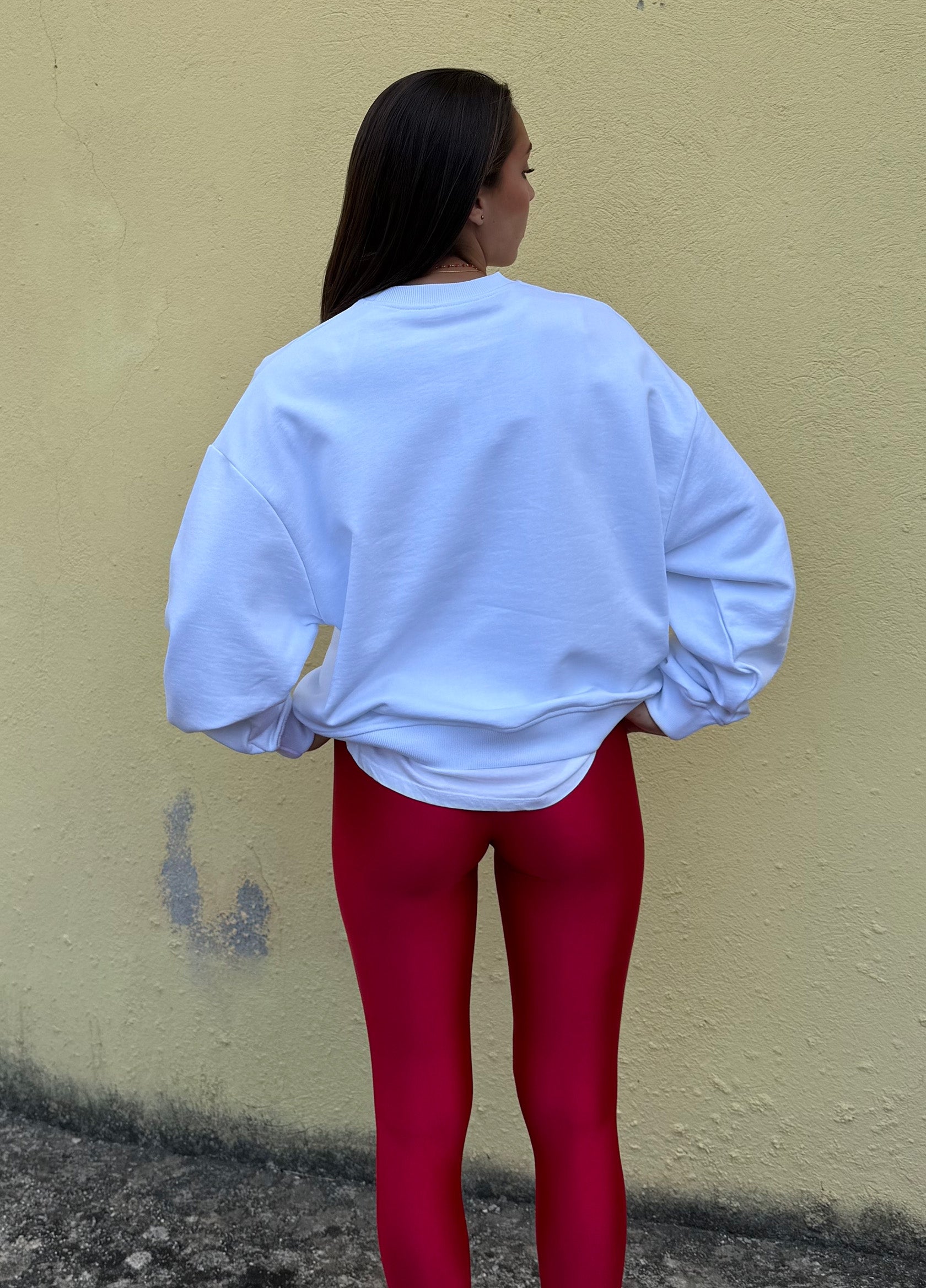 Felpa garzata 26197G bianca con stampa rossa
