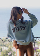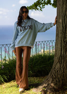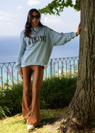 Felpa garzata 26197G Azzurro cielo con stampa marrone