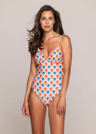 Frufru: our most appreciated model, in the one-piece version. A swimsuit with soft fabric gathered along the edges. The cups are triangle with practical removable padding, the V-neckline, and the length of the thin straps is adjustable thanks to the slider. The fit in the back is regular