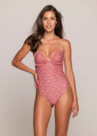 Frufru: our most appreciated model, in the one-piece version. A swimsuit with soft fabric gathered along the edges. The cups are triangle with practical removable padding, the V-neckline, and the length of the thin straps is adjustable thanks to the slider. The fit in the back is regular
