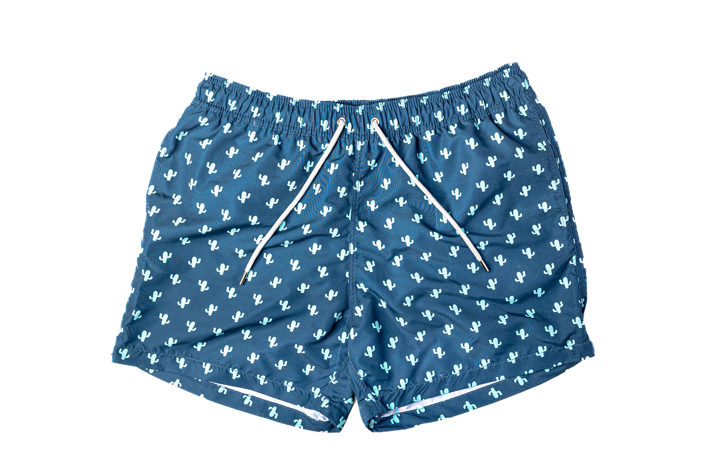 Men's shorts with elastic waistband and drawstring to adjust the fit. Open side pockets and one back pocket with button closure.