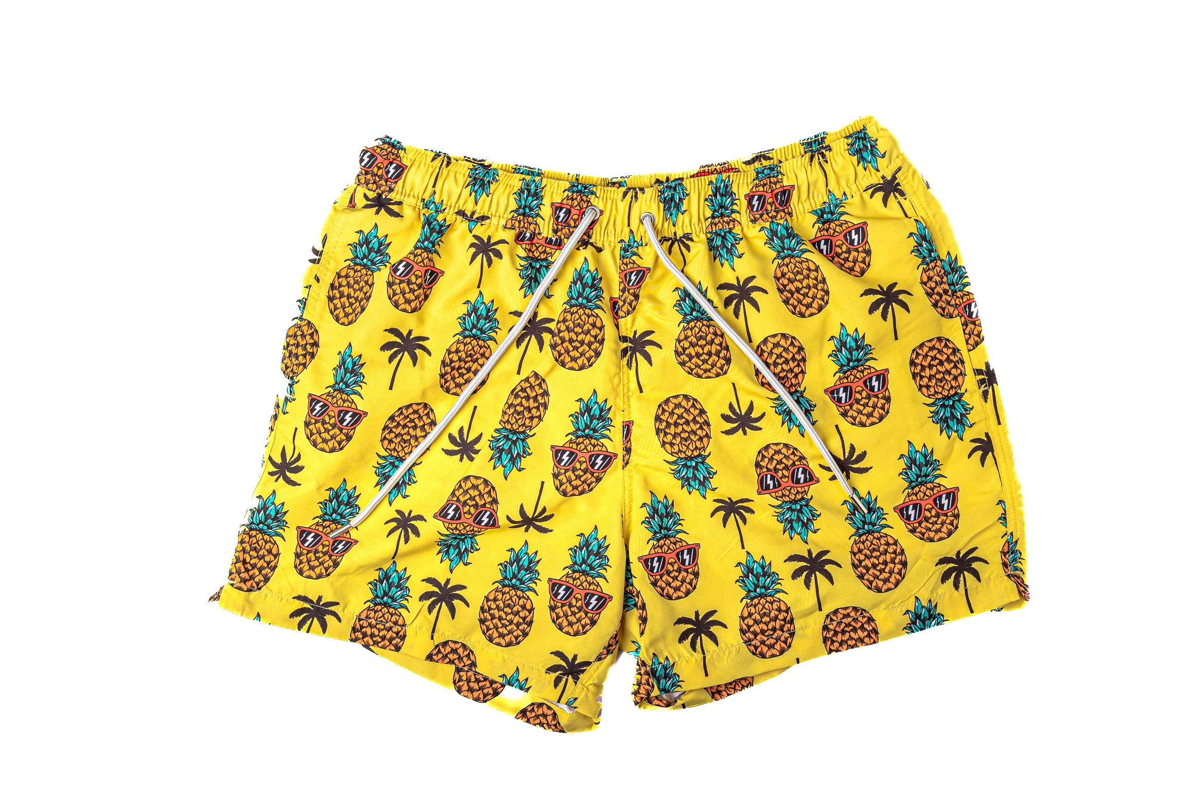 Men's shorts with elastic waistband and drawstring to adjust the fit. Open side pockets and one back pocket with button closure.