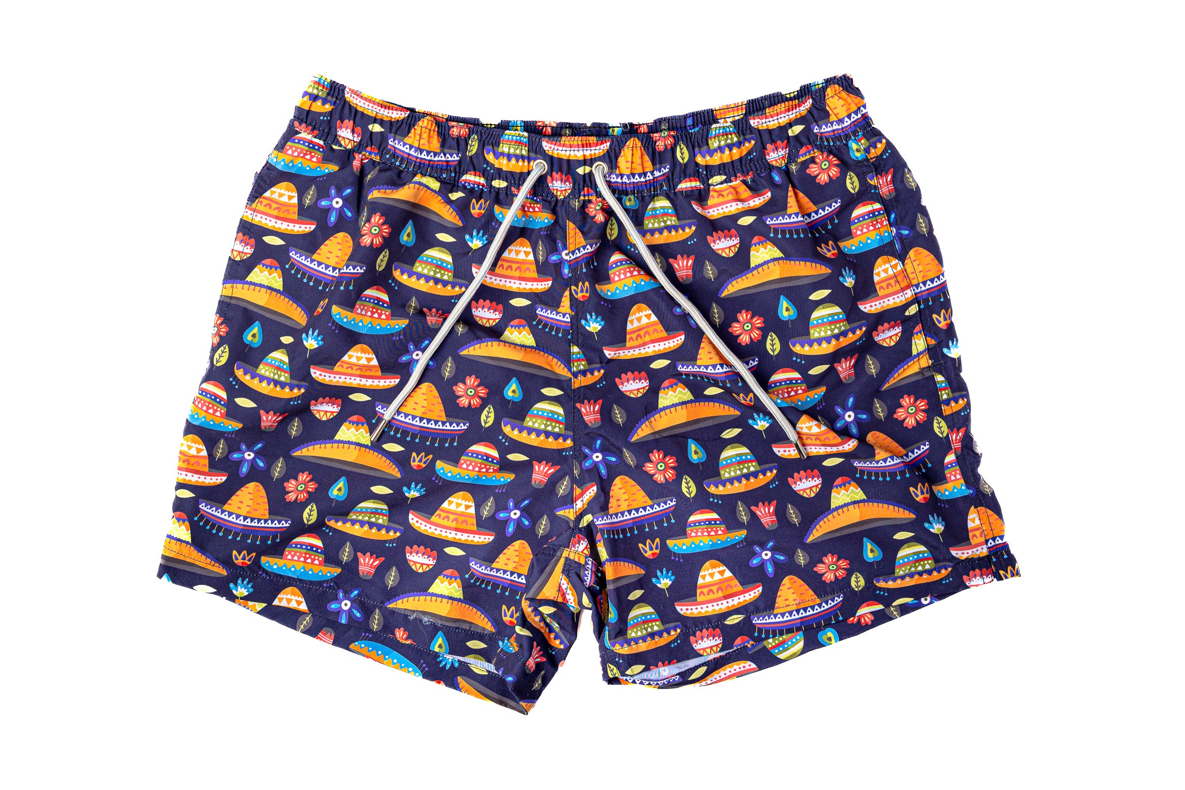 Men's shorts with elastic waistband and drawstring to adjust the fit. Open side pockets and one back pocket with button closure.