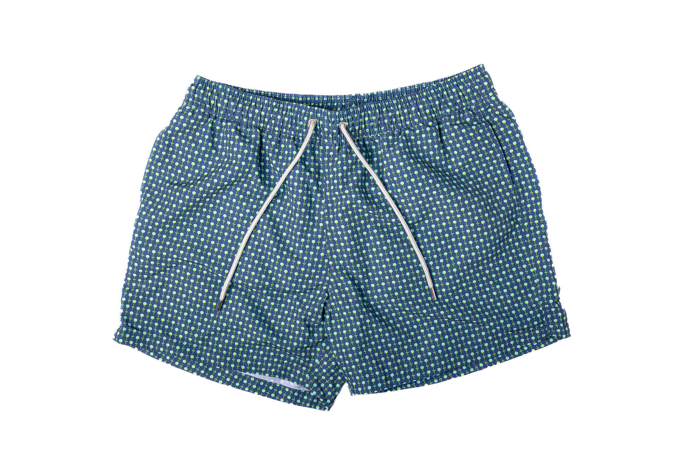 Men's shorts with elastic waistband and drawstring to adjust the fit. Open side pockets and one back pocket with button closure.