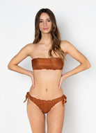 Fru Fru: da sempre il modello bestseller di Wikini. Un costume dalla morbida stoffa arricciata sui bordi per una perfetta aderenza alle forme del corpo. La sua versatilità lo rende adatto a tutti: il top ha pratiche imbottiture removibili, la vita, le spalline e il giro torace sono regolabili grazie ai laccetti